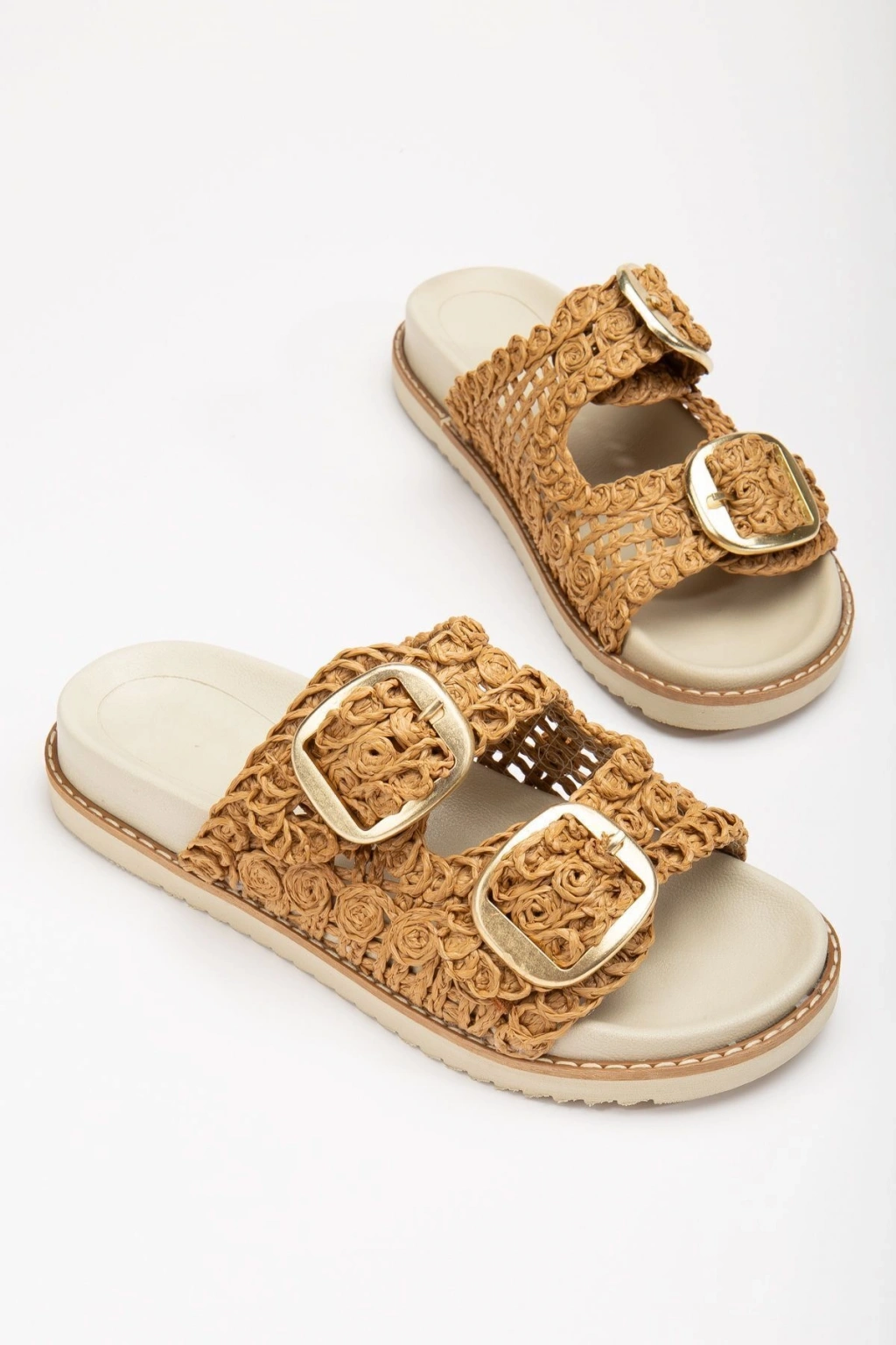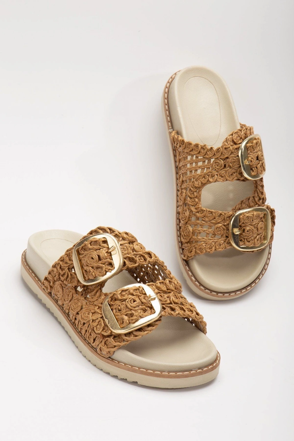 Poli taban materyali sayesinde dayanıklılığı artırılmış ve uzun süreli kullanım için ideal bir yapı sunar; İç astar olarak kullanılan tekstil malzeme, ayak sağlığınızı düşünerek tasarlanmıştır ve nefes alabilir yapıdadır; 1 ila 4 cm arasında kısa topuk boyu, gün boyu rahatlık ve stabilite sunarken şık bir görünüm kazandırır; Casual ve günlük ortamlar için mükemmel uyum sağlayan tasarımıyla her türlü kıyafetle kolayca kombinlenebilir; Ortopedik taban desteği ile ayak sağlığınız düşünülerek tasarlanmıştır; uzun süreli kullanımlarda bile konforunuzdan ödün vermezsiniz; Hasır materyal kullanımı, doğal dokusuyla estetik bir görünüm sunarken dayanıklılığından ödün vermez; Nakışlı ve işlemeli deseniyle göz alıcı detaylar ekleyerek stilinizi yansıtırken aynı zamanda özgün bir tarz oluşturmanızı sağlar; Hasır materyal bileş;